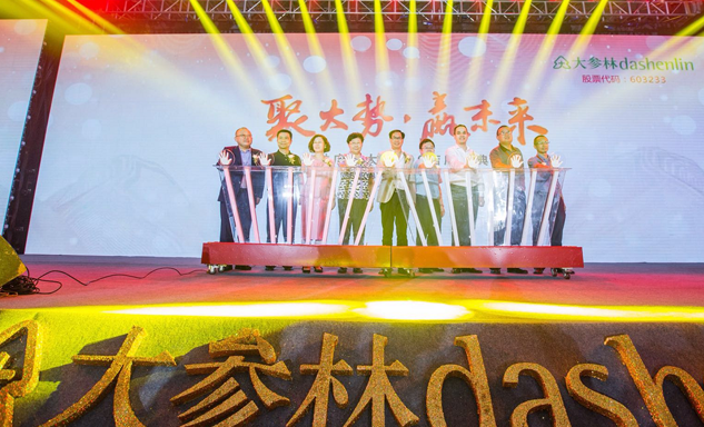 Ag亚洲集团药业集团董事长刘景萍女士与大参林医药集团董事长柯云峰先生、中国医药商业协会执行会长付明仲女士等嘉宾共同开启了“聚大势•赢未来"大参林工商合作峰会的大幕。